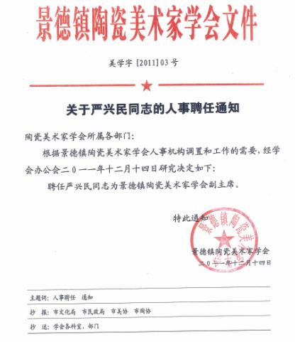 景德镇陶瓷美术家家学会副主席